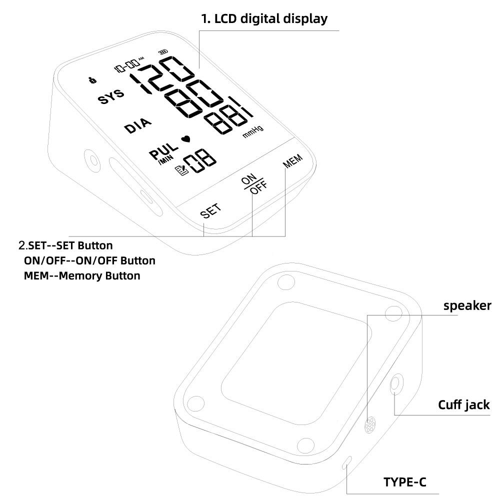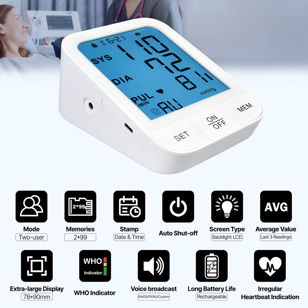 HUAAN дайындауға болатын электронды жоғарғы иық қан қысымын өлшеуіш сфигмоманометр, Дауысты хабарлау, Артқы жарықтандыру, MB-300I_S